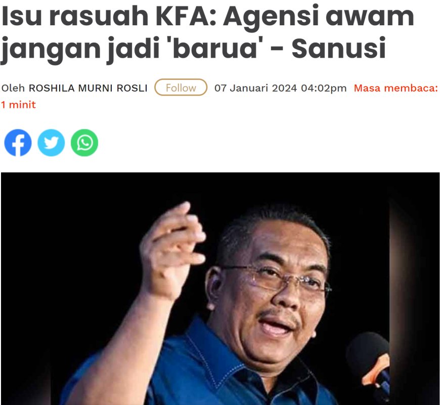 Makin rentung terbakar hati Sanusi bila CEO Persatuan Bolasepak Kedah pula ditahan untuk siasatan SPRM lalu mendakwa agensi awam yang terlibat adalah “barua”.