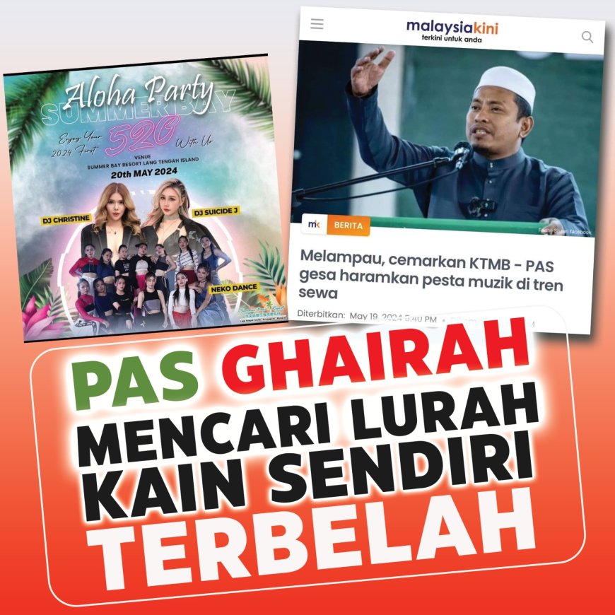 Juak juak PAS nampaknya sibuk menggali dalil dalil bagi mewajarkan Pesta Aloha Pulau Perhentian yang viral di media sosial. Bila sudah terkena batang hidung sendiri , mula cuba menyalahkan pihak lain walhal PAS kini mempunyai kuasa di negeri yang di tadbir seperti Terengganu, Kelanta , Kedah dan Perlis. Bila tanpa kuasa mahukan kuasa , tetapi bila sudah di tangan seperti beruk dapat bunga.
